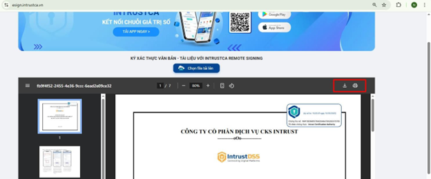 Bước 1: Truy cập trang IntrustCA Chọn file tải lên